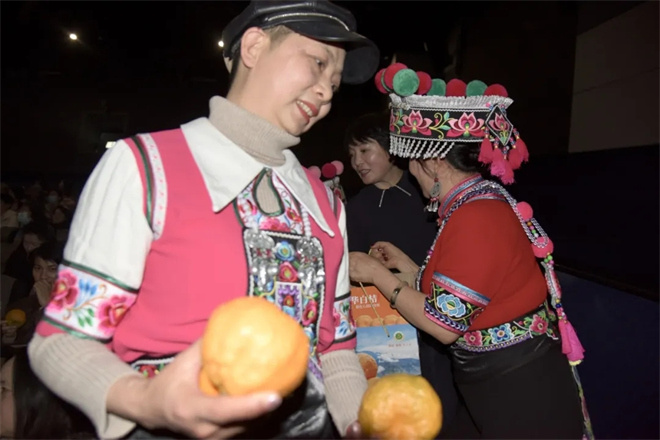 云南省作协原副主席、文学评论家张永权,云南大学教授、文学评论家、滇池学院人文学院院长宋家宏,中篇小说《白桔》责任编辑、著名作家段爱松,云南省民族艺术研究院影视中心主任、昆明影视行业协会副会长王红彬,昆明影视行业协会副会长、电影宣讲团团长刘辉参加观影会,并分别与观众互动,就文学作品转换为影视作品,以及电影叙事手法、题材定位、艺术创新等维度进行了深入交流和探讨。永善县2位白桔种植销售大户代表参与了交流互动,并现场展示分享了白桔,向观众和媒体推介了永善县白桔产业的种植发展情况,还有不少观众现场购买了永善白桔。